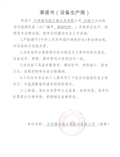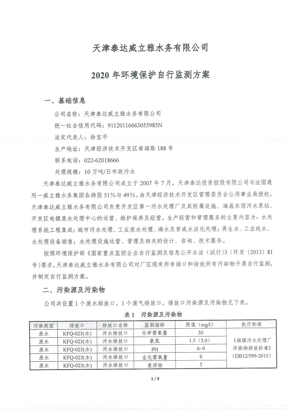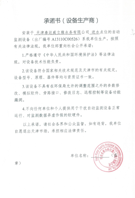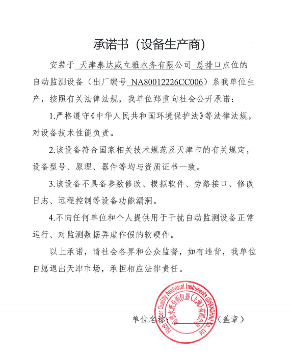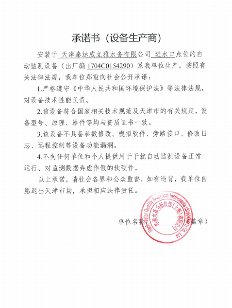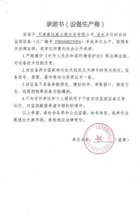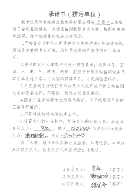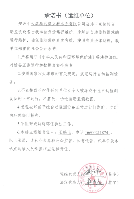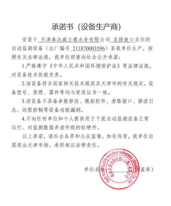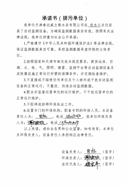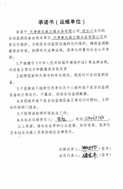 ? 公司出水指標數據經現場數據采集儀采集后直接上傳至天津開發(fā)區(qū)環(huán)保局及天津市環(huán)境監(jiān)測中心。天津市環(huán)境監(jiān)測中心直接將接收自公司的上傳數據發(fā)送至國家環(huán)保部。實現了對我公司出水指標數據的實時在線監(jiān)控和監(jiān)督管理。 自2014年,依《國家重點監(jiān)控企業(yè)污染源監(jiān)督性監(jiān)測及信息公開辦法(試行)》,主要污染物排放情況經天津市重點企業(yè)自行檢測數據發(fā)布系統對外公布,主動接受社會公眾監(jiān)督。 信息發(fā)布平臺 2025年第4季度環(huán)境信息公開:天津泰達威立雅水務有限公司 公司名稱:天津泰達威立雅水務有限公司 統一社會信用代碼:91120116663055985N 法定代表人:徐寶平 生產地址:天津經濟技術開發(fā)區(qū)南海路188號 聯系電話:022-62018666 處理規(guī)模:10萬m3/日市政污水 生產經營和管理服務的主要內容: 水處理系統工程集成;城市污水處理、工業(yè)廢水處理、海水及苦咸水淡化處理;再生水、工業(yè)純水、水處理設備銷售;水處理設施運營、管理及相關的設計、咨詢、技術服務。 其他信息: 天津泰達威立雅水務有限公司成立于2007年7月。天津泰達投資控股有限公司與法國通用-威立雅水務集團各持股51%與49%。由天津經濟技術開發(fā)區(qū)管理委員會公用事業(yè)局授權,天津泰達威立雅水務有限公司負責開發(fā)區(qū)第一污水處理廠及其附屬設施、海晶東雨污水泵站、開發(fā)區(qū)電鍍廢水處理中心的運營、維護保養(yǎng)及經營。 項目(出水) 平均值(mg/L) A標準(DB12/599-2015) (mg/L) 化驗次數(次) 合格率(%) 我公司排放口數量為一個,位于廠區(qū)東南側。處理后出水排入市政專用排污管道,經北排泵站排入渤海灣。2025年10-12月我公司COD、氨氮、總氮、總磷排放總量如下: 146.53 天津泰達威立雅水務有限公司為原天津經濟技術開發(fā)區(qū)污水處理廠,是天津濱海新區(qū)第一座污水處理廠,位于開發(fā)區(qū)南海路與第十二大街交口處,污水處理項目投資總額3.5534億元人民幣,占地8.1公頃,設計能力為日處理污水10萬m3,其中市政污水的比例高于60%。污水處理工藝目前采用“預處理+SBR+反硝化濾池+臭氧催化高級氧化+紫外消毒”。脫水機房、進水泵房、預處理單元和儲泥池的臭氣經過收集管道收集進入生物過濾塔除臭處理。剩余污泥經脫水機脫水處理,泥餅外運處理。工藝系統由在線儀器儀表輸送到中控室實現自動控制。 出水水質達到天津市《城鎮(zhèn)污水處理廠污染物排放標準》(DB12/599-2015)A排放標準。廠界噪聲均滿足《工業(yè)企業(yè)廠界噪聲標準》GB12348-2008(3類)晝、夜標準值。廠界無組織排放廢氣中臭氣濃度、氨、硫化氫濃度均符合《惡臭污染物排放標準》(GB12/059-2018)限值要求。 開發(fā)區(qū)第一污水處理廠現狀主要的大氣影響來自預處理單元(格柵與沉砂池)和污泥區(qū)(污泥脫水機房)的惡臭氣體。污泥脫水機房、污泥料倉、三合一泵房等設施產生的臭氣集中收集,儲泥池、預處理單元等采用加罩密閉設計,臭氣集中收集至生物除臭裝置,除臭效率不低于80%,處理后由15米高排氣筒達標排放。根據天津市環(huán)保局《關于天津開發(fā)區(qū)第一污水處理廠改造工程環(huán)境影響報告書的批復》,開發(fā)區(qū)第一污水處理廠的衛(wèi)生防護距離設為100m。 污水廠廢氣監(jiān)測結果表明,廠區(qū)周界監(jiān)測點位臭氣濃度均低于20(無量綱),符合《惡臭污染物排放標準(GB12/059-2018)的標準要求。 開發(fā)區(qū)第一污水處理廠污水經處理后達到天津市《城鎮(zhèn)污水處理廠污染物排放標準》(DB12/599-2015)A排放標準要求。污水處理廠工藝過程本身沒有生產性廢水排放,所排污水主要為生活污水和污泥處理水,這部分廢水一同返回本污水處理廠的進水泵房,與市政污水一并處理。2025年10-12月出水達標率為100%,無超標情況。 開發(fā)區(qū)第一污水處理廠主要的噪聲設備為鼓風機,鼓風機位于鼓風機房,并設置隔音減震措施,其噪聲影響甚微。 監(jiān)測結果:廠界噪聲共設置4個噪聲監(jiān)測點,執(zhí)行《工業(yè)企業(yè)廠界環(huán)境噪聲排放標準》(GB12348-2008)3類標準,根據監(jiān)測結果,各廠界處噪聲均符合執(zhí)行標準要求。 污水廠運行過程中產生的固體廢棄物主要為柵渣、沉砂、污泥及生活垃圾。生活垃圾和柵渣交由開發(fā)區(qū)環(huán)衛(wèi)綜合服務公司清運處理;產生的脫水污泥委托天津恒基環(huán)境工程有限公司和天津萬德生物工程有限公司進行資源化、無害化、減量化處理。 編 號 名 稱 發(fā) 布 單 位 批號 時 間 1 《關于天津經濟技術開發(fā)區(qū)10萬噸/日污水處理廠項目環(huán)境影響報告書的批復》 天津市環(huán)境保護局 津環(huán)保管 (1998)第43號 1998.2.18 2 《關于天津開發(fā)區(qū)污水處理廠改造工程環(huán)境影響報告表的批復》 天津經濟技術開發(fā)區(qū) 環(huán)境保護局 津開環(huán)評 【2008】198號 2008.12.8 3 《天津經濟技術開發(fā)區(qū)環(huán)境保護局關于天津經濟技術開發(fā)區(qū)第一污水處理廠提標改造工程環(huán)境影響報告書的批復》 天津經濟技術開發(fā)區(qū) 環(huán)境保護局 津開環(huán)評書 【2017】18號 2017.8.30 我公司根據《中華人民共和國環(huán)境保護法》以及《天津市突