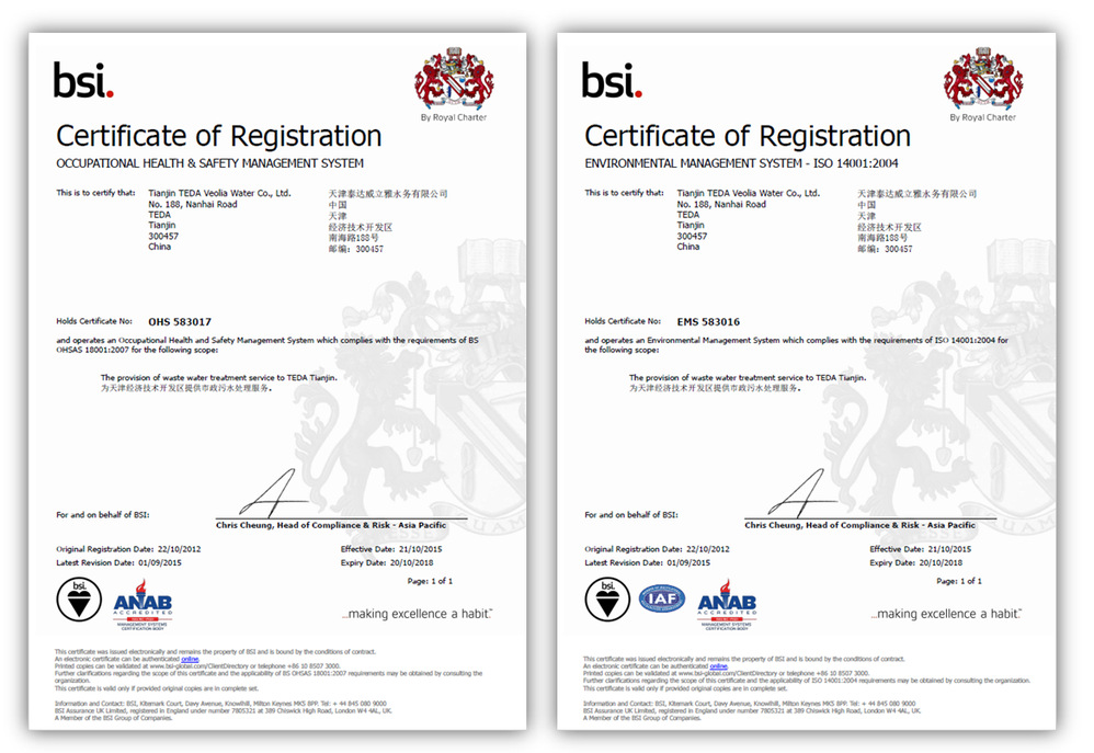 2012年公司獲得BSI公司頒發的ISO 14001OHSAS 18001體系認證證書,保持著ISO 14001OHSAS 18001體系的穩定運行。